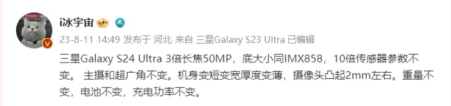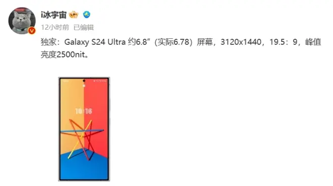 8 月 28 日消息,数码博主 i 冰宇宙今日爆料,三星Galaxy S24 Ultra 将配备 6.8 英寸(实际 6.78 英寸)屏幕,3120*1440分辨率,屏幕比例为 19.5:9,峰值亮度高达2500nit !