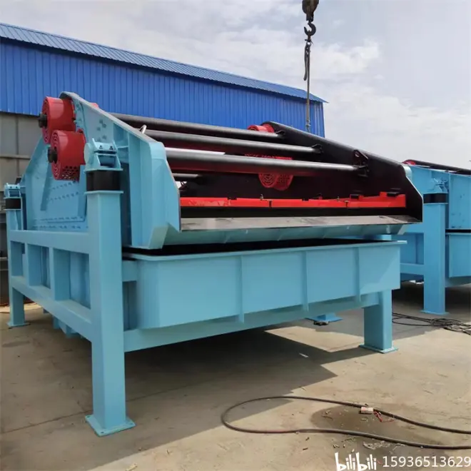 脱水筛采用了双电极自同步技术,通用型偏心块、可调振幅振动器。主要由筛箱、激振器、支承系统及电机组成。通过胶带联轴分别驱动两个互不联系的振动器作同步反向运转,两组偏心质量产生的离心力沿振动方向的分力叠加,反向离心抵消,从而形成单一的沿振动方向的激振动,使筛箱做作往复直线运动。
