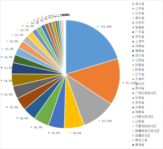 从项目数量上看,浙江省以133的总量独占鳌头,江苏省以91的总量位列第二,山东省以67的总量排第三。