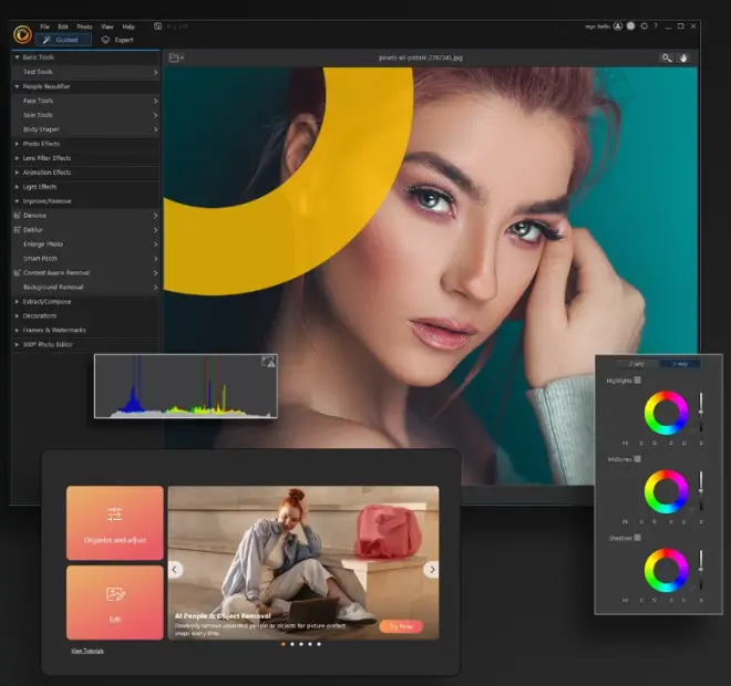 Photo Director Ultra 14.7是一款功能强大的照片编辑软件。它提供了多种高级编辑工具和特效,使用户能够轻松地对照片进行修饰和美化。这款软件拥有智能修复、人像美化、背景移除、HDR和全景等高级功能,能帮助用户实现更复杂的编辑需求。此外,它还具有批量处理和管理照片的功能,让用户可以轻松处理大量照片。