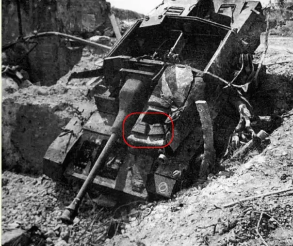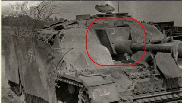 由于四号坦克底盘比三突更长,所以车前会出现一大段空缺,德国人的做法倒也是很简单,将这一缺口使用一块钢板封闭,而那些专门生产的突击炮底盘则将变速箱顶板进行延展
