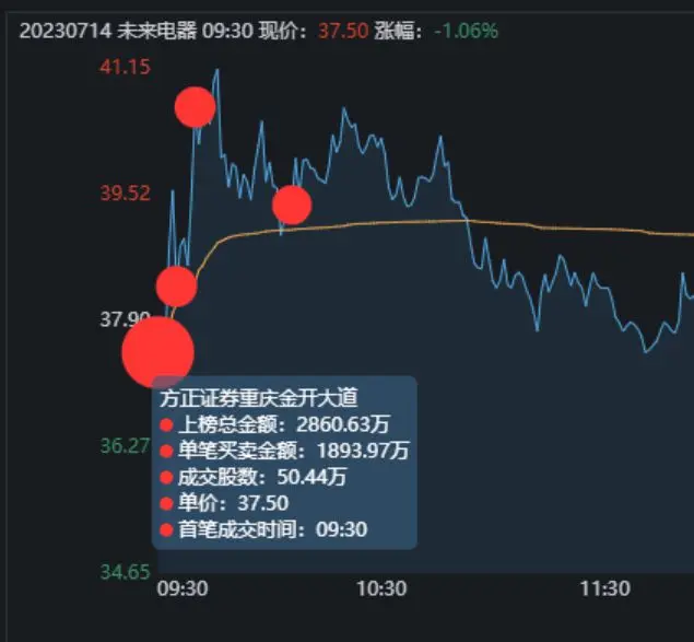只有一个操作上榜:看好电力方向,瞄准未来电器,买入7465手,均价38.32,合计2860万。