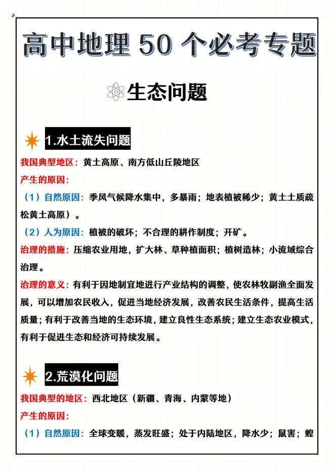 今天给大家分享高中地理的必考50个专题,同学们赶紧打印下来学习吧