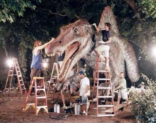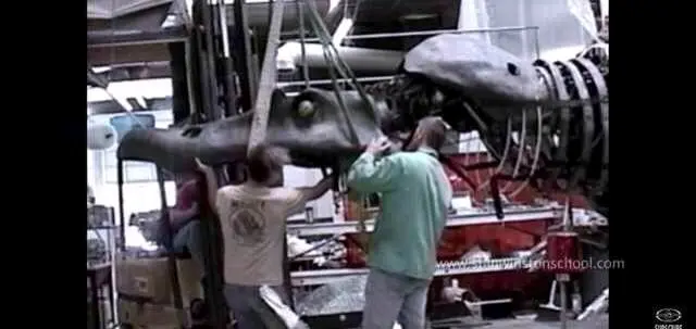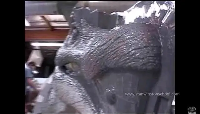 乔选了一只最大的,制作团队先扫描了1:5小比例模型,放大到1:1后,再用电脑分段打印出来。组装后加上小比例做不了的细节。再制作模具,准备翻模。