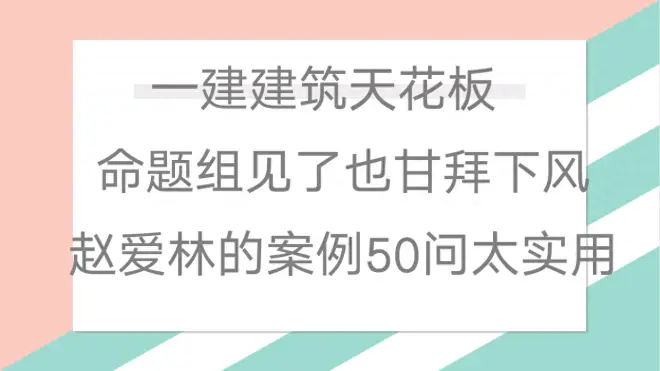 不过朋友给我推荐了赵爱林老师的一建建筑案例50问,可以说是建筑专业的天花板了。里面将这些年反复考的知识点以问答的形式总结了出来,紧扣考试命题和考情方向。这50问7天就能看完,快速熟悉掌握案例题型,轻松保分110。