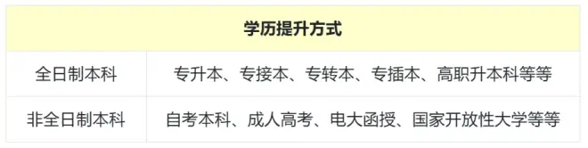 专科生如果选择了错误的学历提升方式,那你一辈子的发展都将会受到影响!所以,接下来的内容,请你一定要点赞收藏起来!其实,学历提升方式并不复杂,我们可以把那些五花八门的学历提升方式归为2类,一类是全日制本科,一类是非全日制本科。