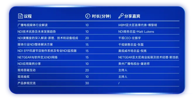 峰会邀请到NDI官方、电视台老师、各品牌方负责人、IABM协会等,为您提供现场专家答疑及一对一深入交流的机会。