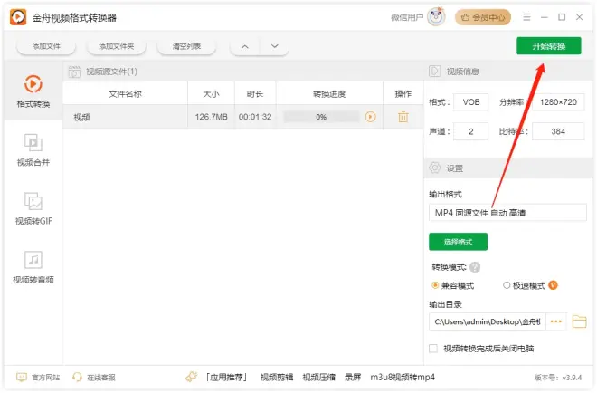 软件版本:金舟视频格式转换器V3.9.4