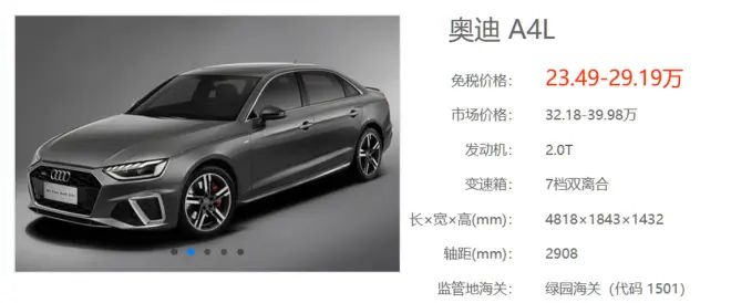 然后是一汽奥迪留学生免税车奥迪A4L的真实纪录