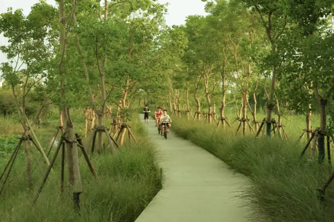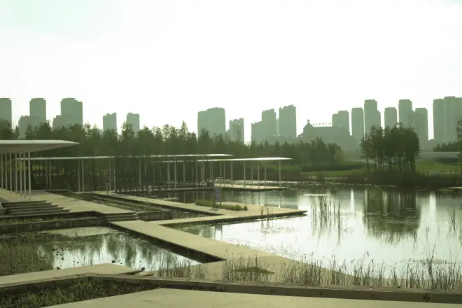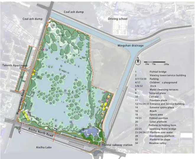 项目位于长江中游最大城市之一的江西南昌,处在中国最大的淡水湖鄱阳湖的西岸。区域洪水与城市内涝是该城市雨季影响最大的消极因素,土人设计将一片面积126英亩、严重受污染的水产养殖场改造成了一篇梦幻般的漂浮森林。用以调节雨水,营造野生栖息地,提供城市交流空间,同时成为人与自然的交流媒介。