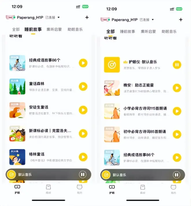 此外,喵喵儿童护眼仪Pro还有丰富的听学内容,使用时,我们可以给孩子在喵喵机APP内选择不同的护眼模式和振动强度,并且人文知识、睡前故事、助眠音乐等内容都可以免费听,让孩子放松和护眼两不误。