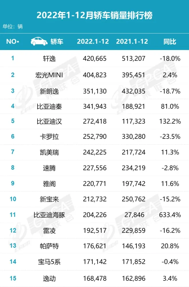 换来的是轩逸、朗逸、卡罗拉以及途观,2022年销量同比下降约20%。