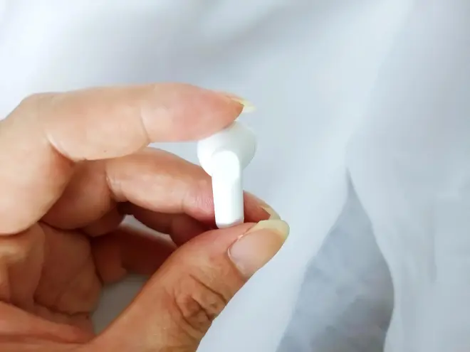 拿到耳机的那一刻我是非常惊讶的,它真正将小巧两个字发挥到了极致,整个耳机重量非常的轻盈,拿在手上几乎感觉不到重量。而且这款耳机采用的是人体工程学设计,它拥有六面环绕支撑,能够营造出一种无感佩戴的感觉,说实话,我第一次戴上之后也是非常的惊讶,戴了好像没戴一样,但是又能真切的体会到有声音从里面传出。