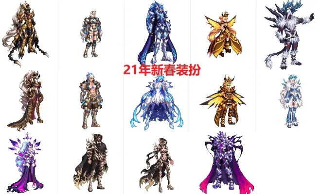 “21年新春装扮”,比较推荐女魔法、女枪手、魔枪士、守护者选择,有一种很飘逸的感觉,当初也是能卖2000多万的时装,用来散搭也不错。