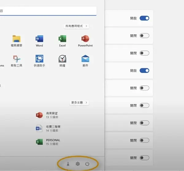 还可以通过在「开始」菜单,搜索「设置」,依次点击「个性化」—「开始」—「资料夹」来开启所需要的项目,开启后项目就会出现在「开始」菜单的右下方。