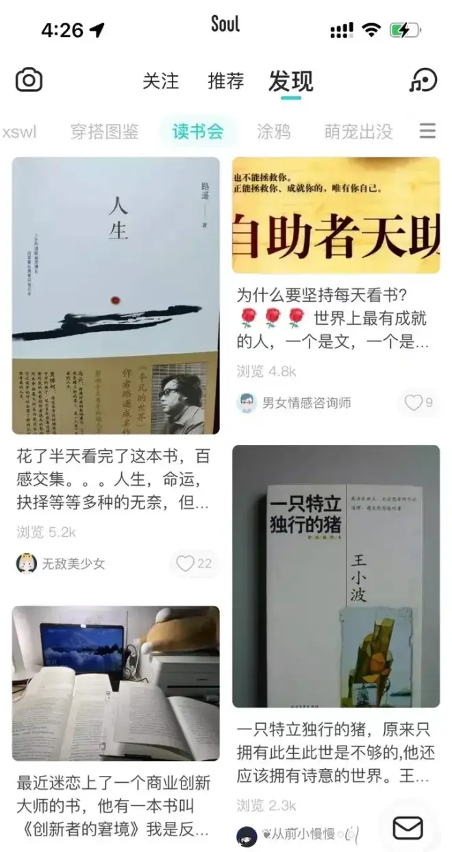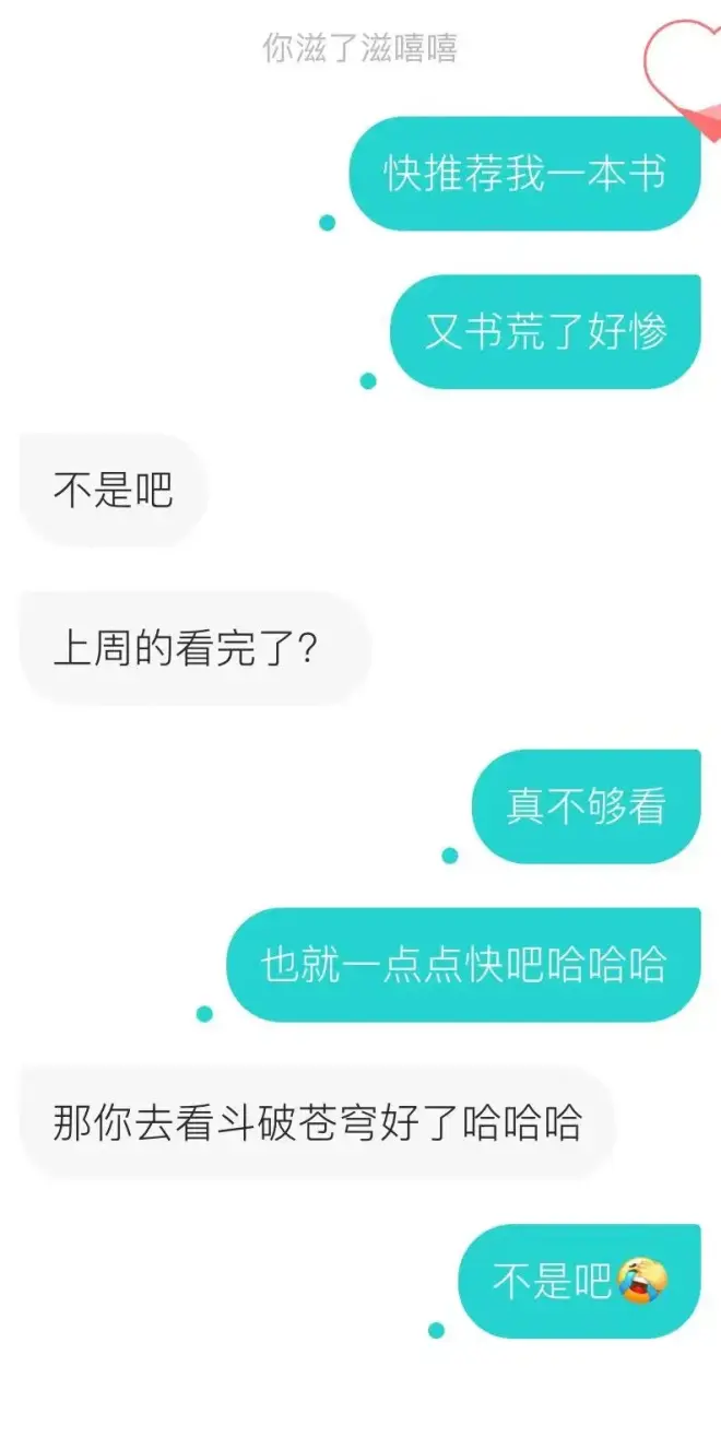 刚开始我也是随便找人聊聊天,用了越久越发现,直到有天碰到一个书虫大佬老张,他巅峰时期一天能看三本书,认识久了就这么天天跟他被他安利各种书,导致我现在看书都特别快,平均5天一本.