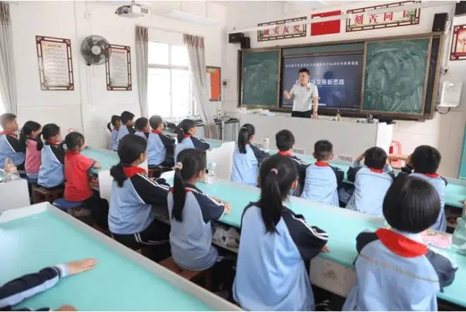 当天下午,深圳实验学校足球运动中心负责人、总教练简比学带领团队走进校园同师生交流,从足球的发展到足球运动的基本规则,简教练给同学们上了一堂生动的理论课程。听着简教练的讲解,同学们已经迫不及待想去操场“大展脚力”。