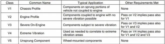 USCAR-2 rev8 中的表 5.1.4.3 指定了部件振动等级。
