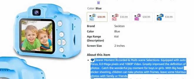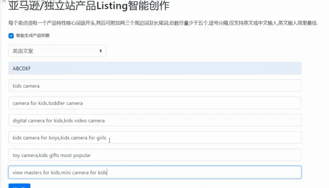 工具的名称叫做wordkit,大家可以直接去搜索;假如我的产品是儿童相机,我想去做关于儿童相机的5点描述怎么办?