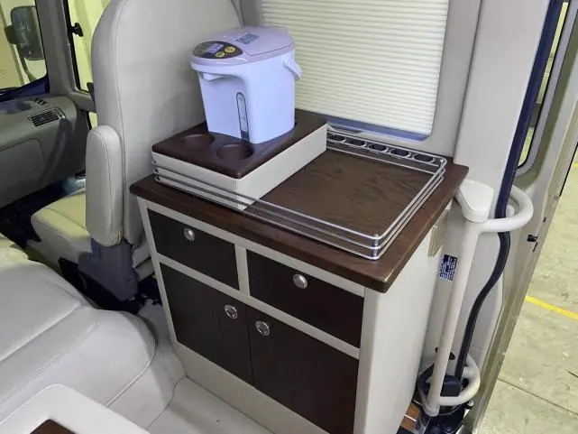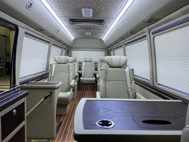 丰田考斯特内饰改装很符合公务接待车的标准,不奢华却舒适的选择是领导最喜欢的,一个单位具备一台这样的商务车是非常有必要的,丰田考斯特改装商务车,除了可以选择座椅的数量,同样也可以选择座椅的材质。豪华真皮座椅,可旋转的首长席座椅,以及原装进口的埃尔法座椅,丰田考斯特改装都可以满足我们对于商务车的需要。丰田考斯特改装商务车舒适的座椅再配备上高档的办公桌,办公桌加桃木和真皮的装饰,丰田考斯特改装商务车充分满足了商务办公的需要,更加能够提高丰田考斯特改装商务车的档次感。