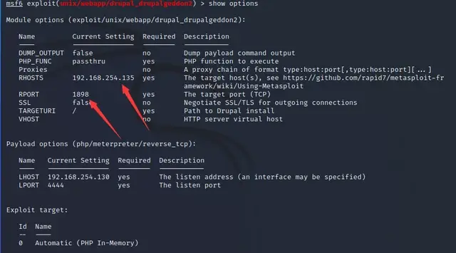 set rhosts 192.168.254.135