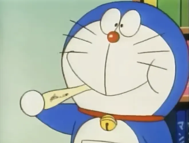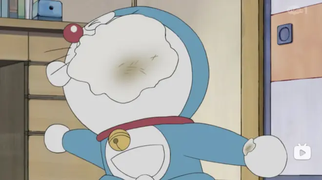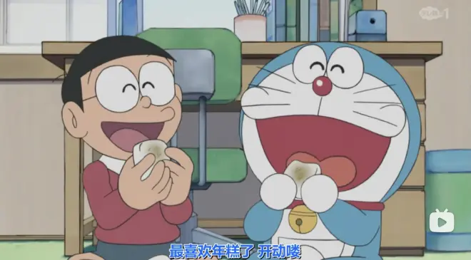 其实这不是哆啦A梦短篇中第一次出现年糕,理论上的第一集《从遥远的未来世界来(未来の国からはるばると)》(又译作《来自未来世界的机器人》),大雄悠闲地躺在屋里,应该吃的也是年糕。