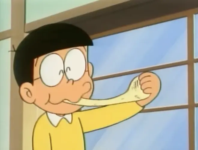 如今老夫已不是那个没吃过没见过的小毛孩了,这种“拉丝”超过40厘米的(根据大雄的臂展推算),橡皮筋都甘拜下风,兰州拉面直呼内行。