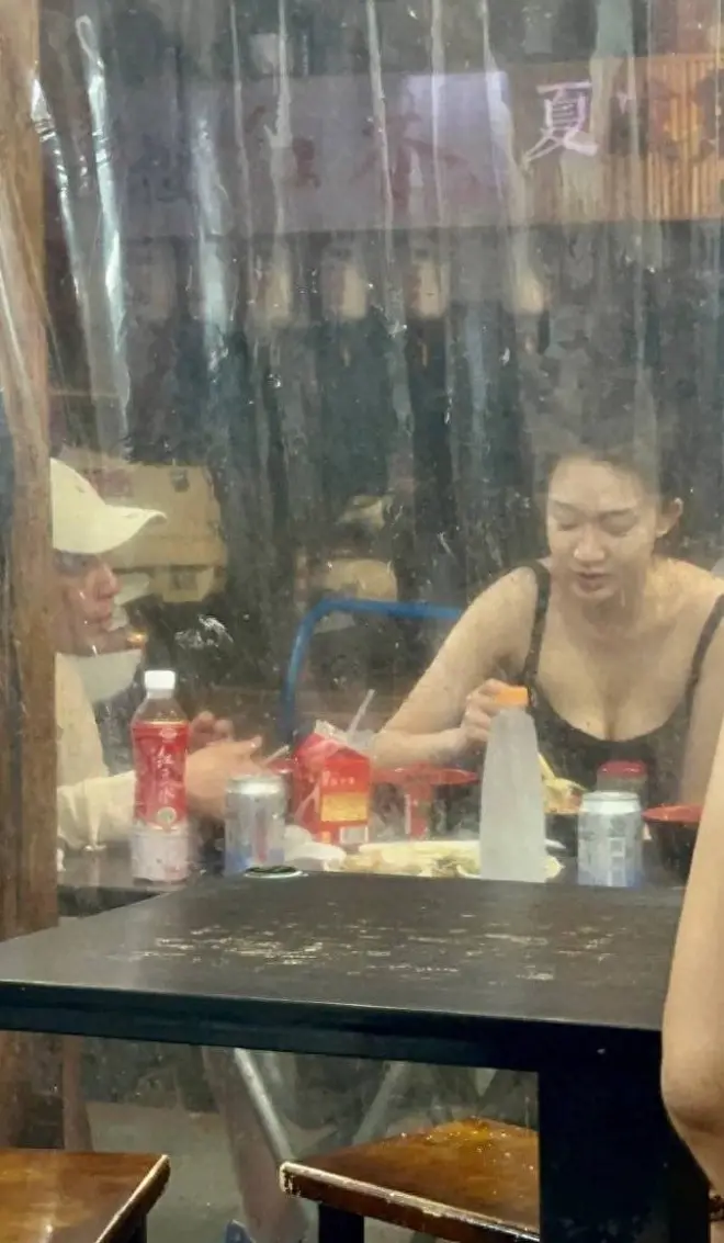两人直接同吃一碗面,全程有说有笑,十分亲密。女方身穿吊带长裙身材火辣,两人用餐后同坐一辆出租车的后排,一起离开。