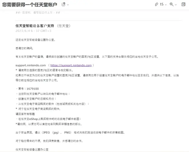 不过有了任天堂账户当前所在地的信息,我就能去找对应的国家的任天堂客服了。我查了一下各个区的联系方式,这里有传送门【任天堂官方客服怎么联系?(全区教程) - https://zhuanlan.zhihu.com/p/132594250】