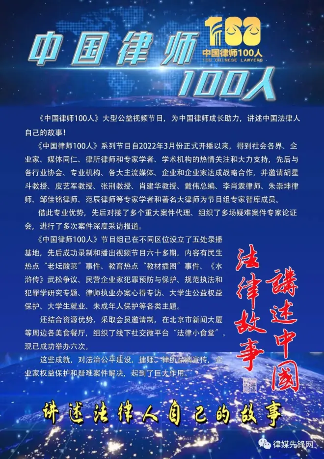 《中国律师100人》之《法律小食堂》第十二餐线下活动,于6月24日周六晚在北京大光区星光影视园星光千禧酒店进行。
