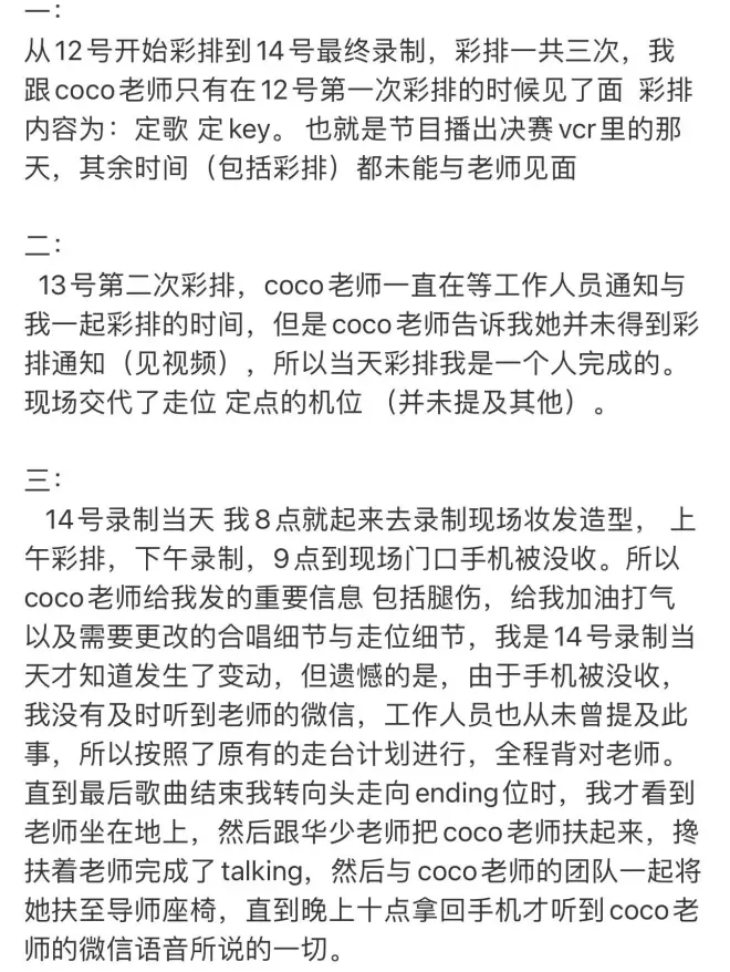 王泽鹏确认了李玟在录制节目的过程中,身体不舒服,腿脚不利索,却并没有得到任何人的帮助。