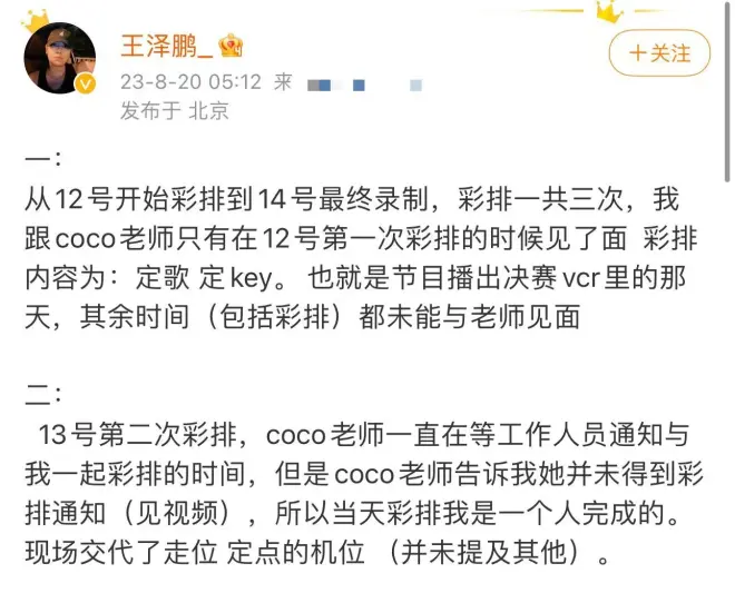 8月20日,李玟的学员王泽鹏终于忍不住出来发声了,王泽鹏曝光了很多导师被欺辱的细节。