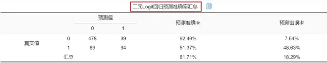 SPSSAU会输出模型预测准确率,见下图: