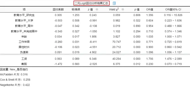二元logistic回归分析结果如下图: