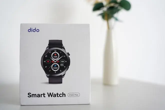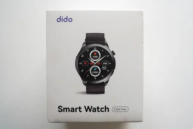 Dido E56 PRO Max的包装很简洁,方正的盒子,正面为手表的外观,左上角为“dido”的logo。