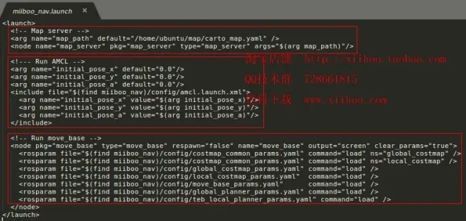 启动导航所需的各种节点的启动文件miiboo_nav.launch: