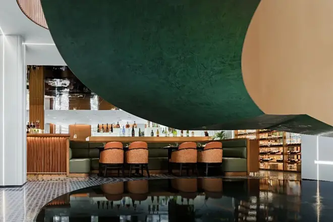 空北京宴一带一路主题餐厅位于亚投行,本项目用极具抽象的表达方式,呈现气象万千、朝气浪漫的盛唐气象。