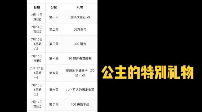 ㄴ活动期间,公主将带来更加珍贵的礼物。