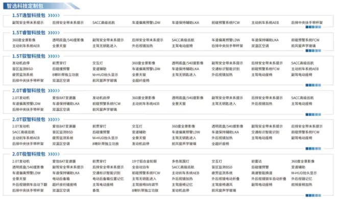 在预算充足的情况下,用户可考虑选装和增配11大配置升级包。其中,1.5T逸智科技包,在性价、实用、功能等方面,都做到了最大化的均衡。2.0T极智科技包,集动力、舒适、安全、智能等37项顶级配置于一体,是追求高动力、高智能、高舒适性用户的最佳选项。此外,五大臻选智慧生活包,还带来手机无线充电、电动后备箱、方向盘加热等自由选装,为不同预算、不同需求的用户,量身打造专属于你的“梦中情车”。