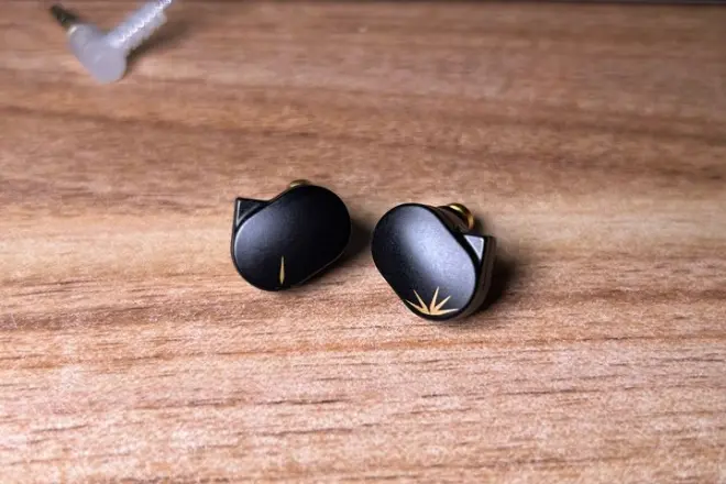 腔体外壳虽然跟第一代在大体的形状上是相似的,但是实际上是做出了一定的微调。两代的竹都是基于合金熔铸工艺来制造的腔体,只不过竹的面板是一个曲率相对固定的曲面,看起来类似弯折过的,而竹2则直接做了类球面的处理,像是从中心顶起来一块。面板上的图案也进行了更换,由原来两侧相同的一串竹叶,变成了从数量上两侧可以互补的星芒状竹叶,图案所占面积小了不少。就我个人审美来说,这个系列的产品里我还是更偏向于菊的面板样式,对称和谐。至于做工细节,竹2这代至少从我目前手里拿到的这条来说,比第一代的前后腔缝隙是要更加窄一点。腔体内侧对于耳道口附近的耳部结构也进行了一定的适配。由于腔体本身足够小,其实它在大部分人的耳廓里面存在感都不是特别高,结合下面介绍的一些改变,它的佩戴稳定性是要更加出色的。