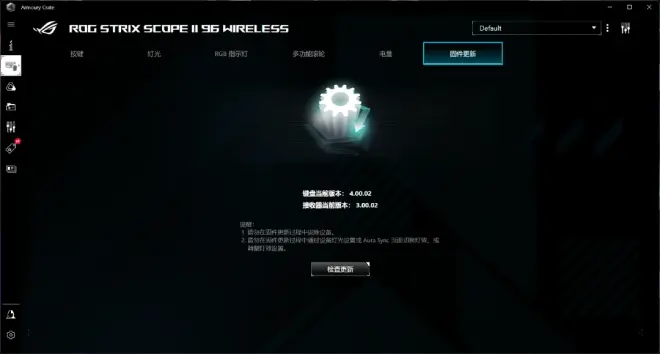 固件更新 可对主键盘、数字区键盘、接收器进行统一固件升级