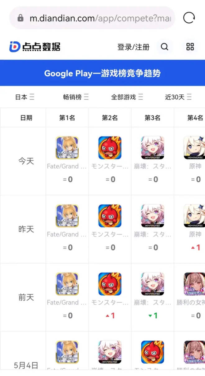 不可否认的是图片中帕劳平均下载量算错了,但就算如此帕劳每人都要平均下载2次崩铁,帕劳部分人吃喝都成问题,哪里会买一个好的设备去玩崩铁呢?难道米哈游发能支持崩铁设备给帕劳人并让他们下载两次崩铁吗?恐怕不能。 接下来说部分网友吹捧的崩铁日服数据,这种数据在短期内会有比较大的改变,但显而易见的是崩铁并不稳居第一。在5月5日它和FGO,《怪物弹珠》打的有来有回。