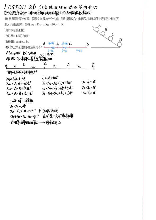 Lesson 26 匀变速直线运动逐差法介绍--手写笔记