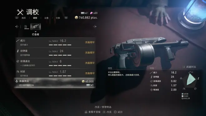 三把奖励武器直接用卷进行高级改造会把弹容和装填速度升满,刀则是直接升满耐久,废话,都直接无限耐久了。