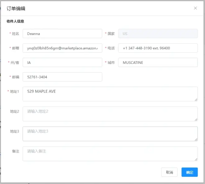 操作指引:在订单管理列表右侧点击修改,进入订单编辑可以修改订单的收件人信息。