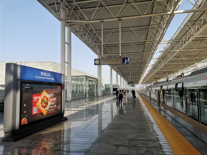 郫县西站,往彭州方向的列车会在这里跨线,出站可换乘成都地铁有轨电车蓉2号线,旁边是郫都客运中心