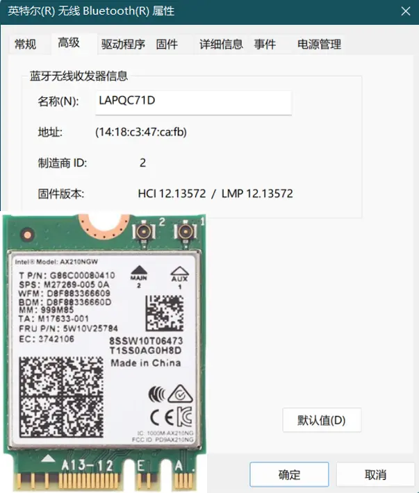 我手里的AX210是最早期的001批次,按照奸商的说法是只支持BT5.1,然后精彩的就来了——给你们看一下我当前实际的蓝牙版本: