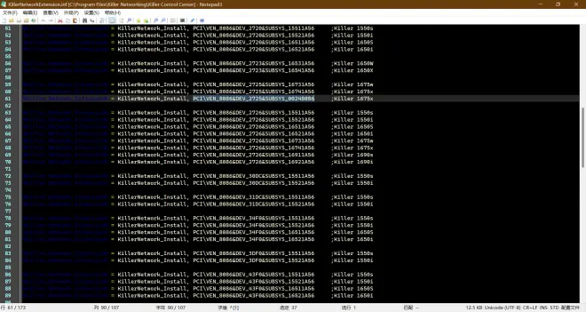 1)用记事本打开【KillerNetworkExtension.inf】,搜索刚刚使用的1675x ID所在的注册行;