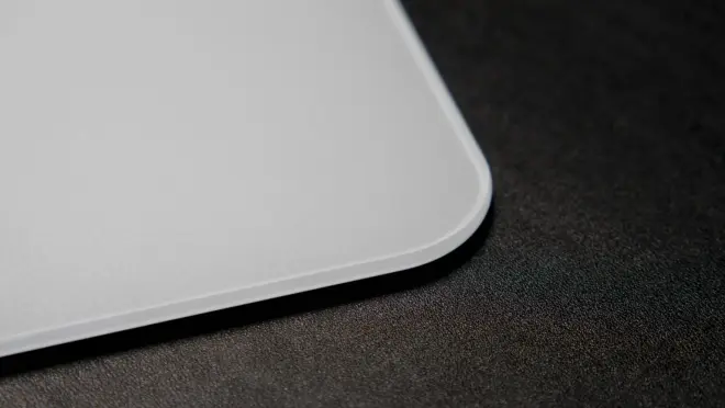 玻璃四周经过圆角处理,摸上去没有割手的感觉,雷蛇官方页面说这是CNC铣削出的圆角。
