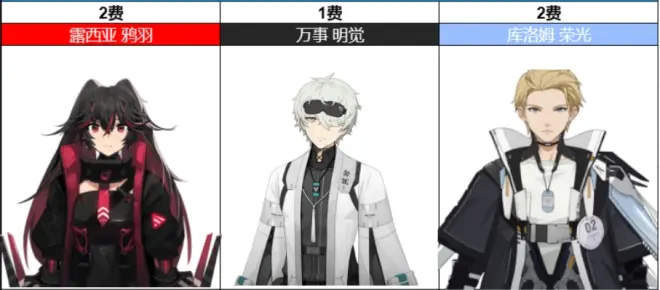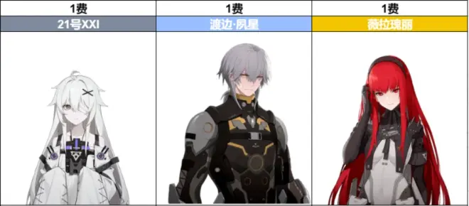 影印中会列出所有角色,A级和独域机体均为1费 ,无时停S级角色均为2费,后文称为二费S,有时停的S级角色则为4费,后文称为四费S,这个费用数代表招募该角色时所需消耗的招募点数。